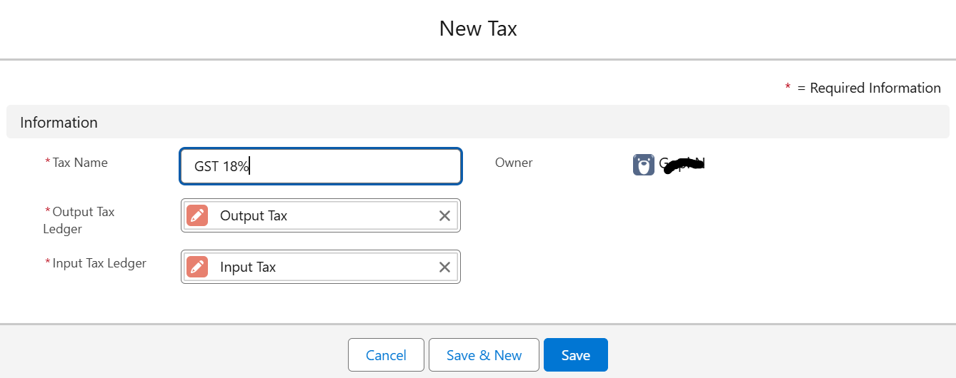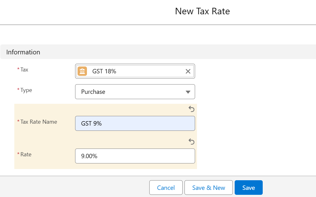 Each tax (e.g., GST, VAT, TDS) should be created as a separate record.