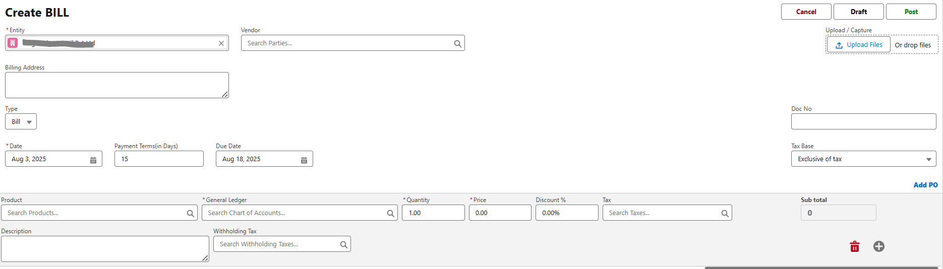 If you need to create a similar bill, you can use the Clone option. This will copy all the details from an existing bill into a new draft. You just need to review and save it.